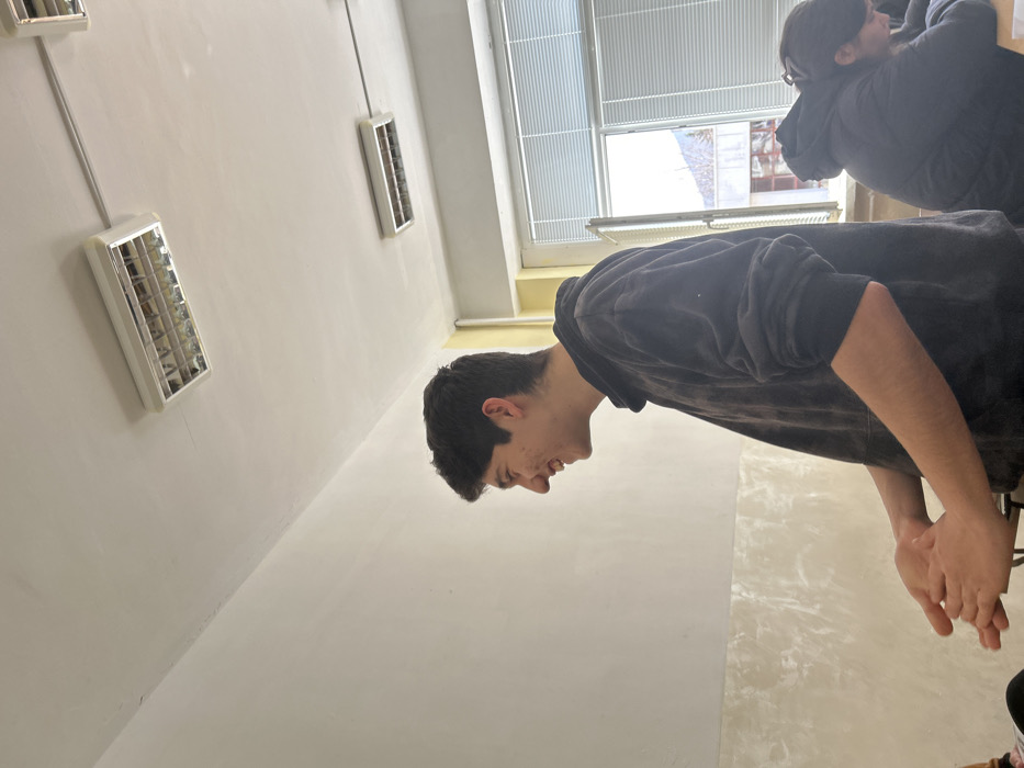 The image displays an indoor scene within a building in Pravets, Bulgaria, consistent with a classroom or institutional room