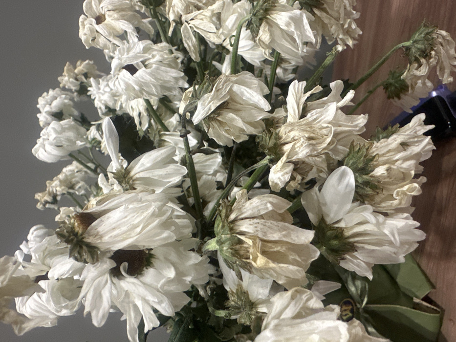- "A close-up captures a bouquet of wilted white daisies" by FM-oAXMt2, licensed under CC BY 4.0