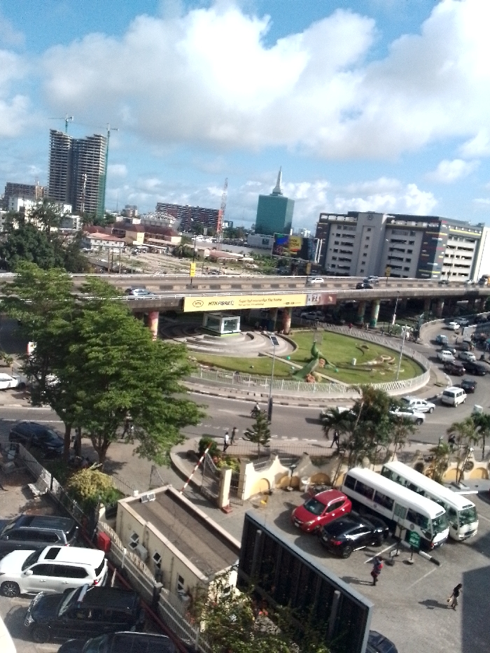 - "This is an aerial view of the Falomo Bridge and Roundabout area in Falomo, Lagos, Nigeria, under a partly cloudy sky" by FM-NqVRd2, licensed under CC BY 4.0