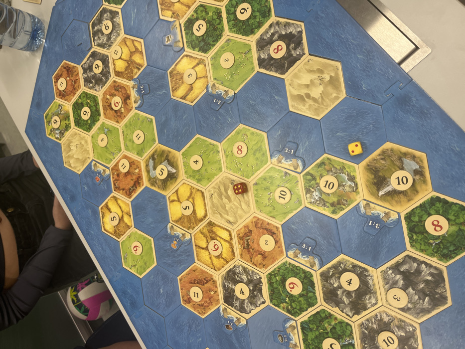 - "The scene depicts an ongoing game of Catan (The Settlers of Catan) set up on a light-colored surface, likely a table, within an indoor environment in Eindhoven, Netherlands" by FM-U3B7Q2, licensed under CC BY 4.0