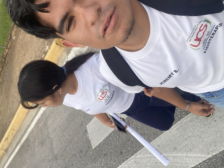 - "Two individuals wearing matching white t-shirts with the "UCS Fisioterapia" logo are posing for a selfie" by FM-SP1IA3, licensed under CC BY 4.0