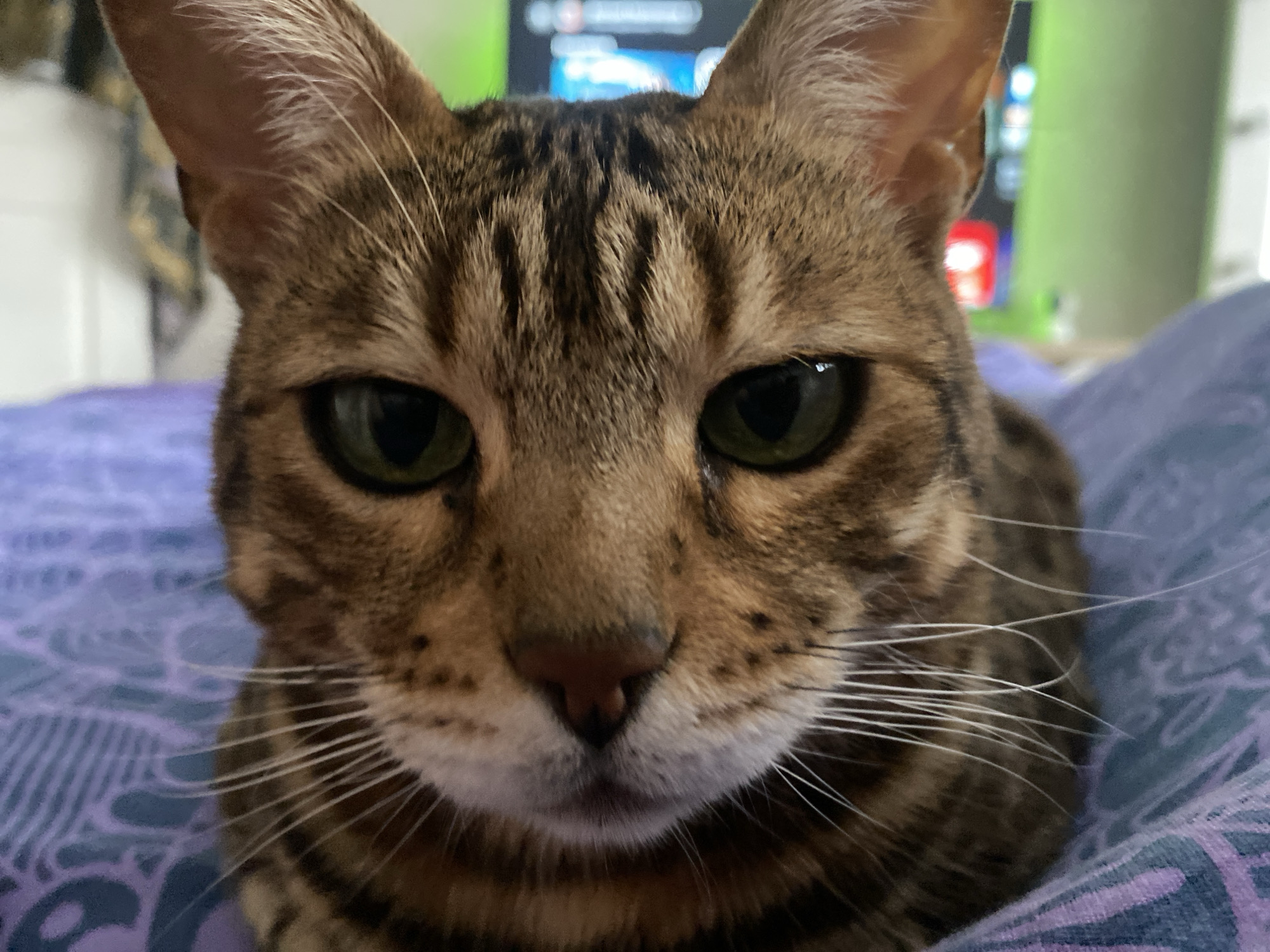 - "A close-up shot focuses on a brown tabby cat with a somewhat stern expression" by FM-2nUQI2, licensed under CC BY 4.0