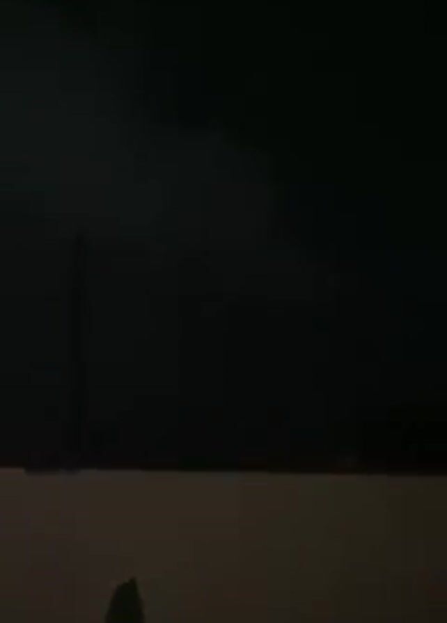 fireworks at night. The sky is dark, and the explosions light up the frame momentarily. The lower portion of the frame is dark and indistinct, possibly showing land or objects in the foreground. After the fireworks explode, the screen returns to black.