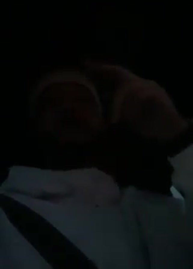 A person wearing a white hoodie and a headband is sitting in a car, talking to the camera. The scene is dark. The person is wearing a seatbelt.