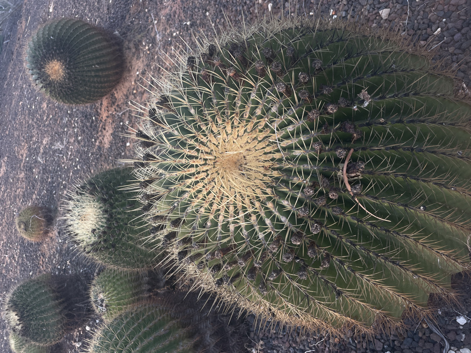 - "The image depicts a close-up, elevated view of multiple *Echinocactus grusonii* (Golden Barrel Cacti) within a botanical garden setting, specifically identified as the Yarkon Park Cactus Garden in Tel Aviv, Israel" by FM-pCm752, licensed under CC BY 4.0