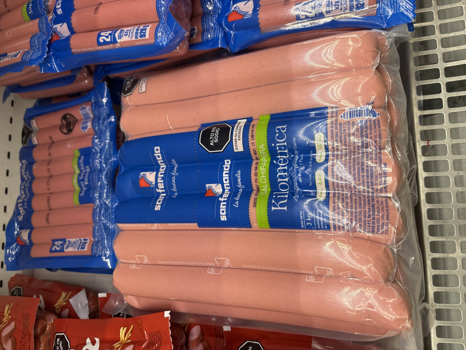 - "The image displays a retail store shelf in San Juan de Miraflores, Peru, featuring multiple packages of San Fernando brand sausages (hot dogs)" by FM-kyigs1, licensed under CC BY 4.0
