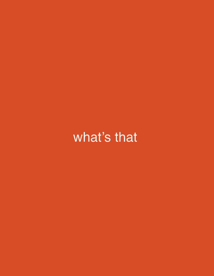 text "what's that" in white on an orange background