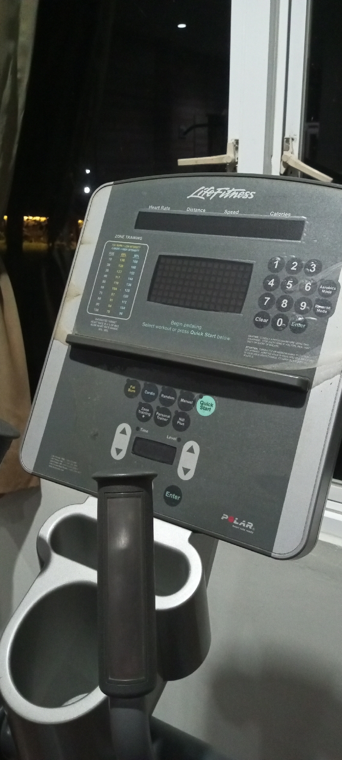 - "The image presents a detailed, slightly angled view of the console of an inactive Life Fitness exercise machine, located within a facility in Pacet, Indonesia" by FM-wbK863, licensed under CC BY 4.0