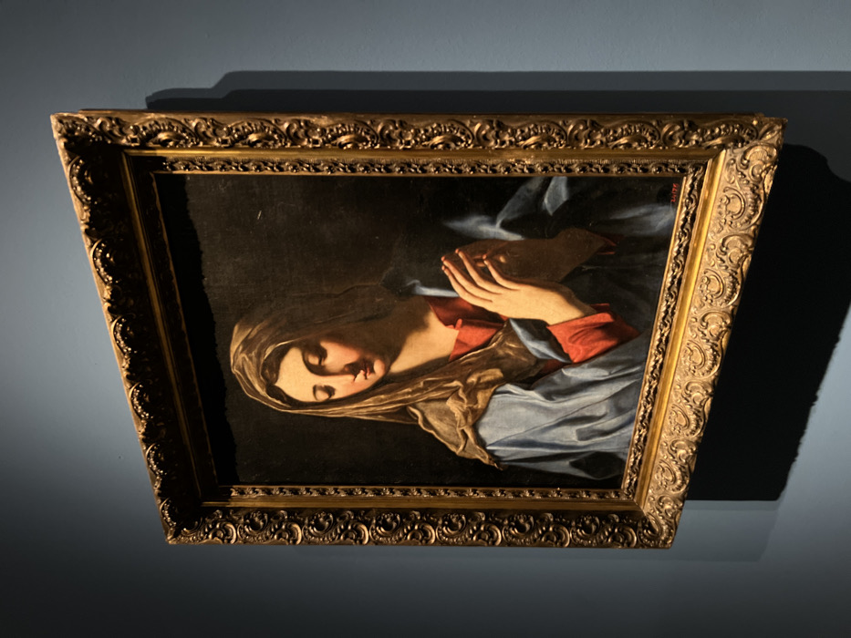 - "A framed oil painting, identified as Sassoferrato's 'The Virgin in Prayer,' is exhibited on a light blue-grey wall within the Museu Nacional d'Art de Catalunya (MNAC) in Barcelona, Spain" by FM-3gzhe2, licensed under CC BY 4.0