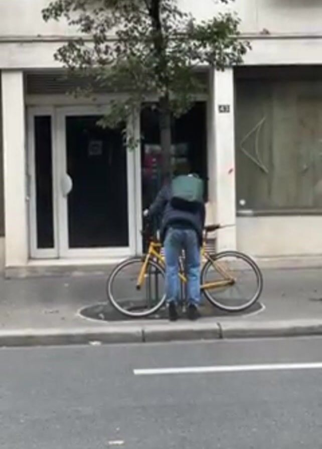 - "A man is locking his yellow bicycle to a tree in an urban environment" by FM-lS6eB2, licensed under CC BY 4.0