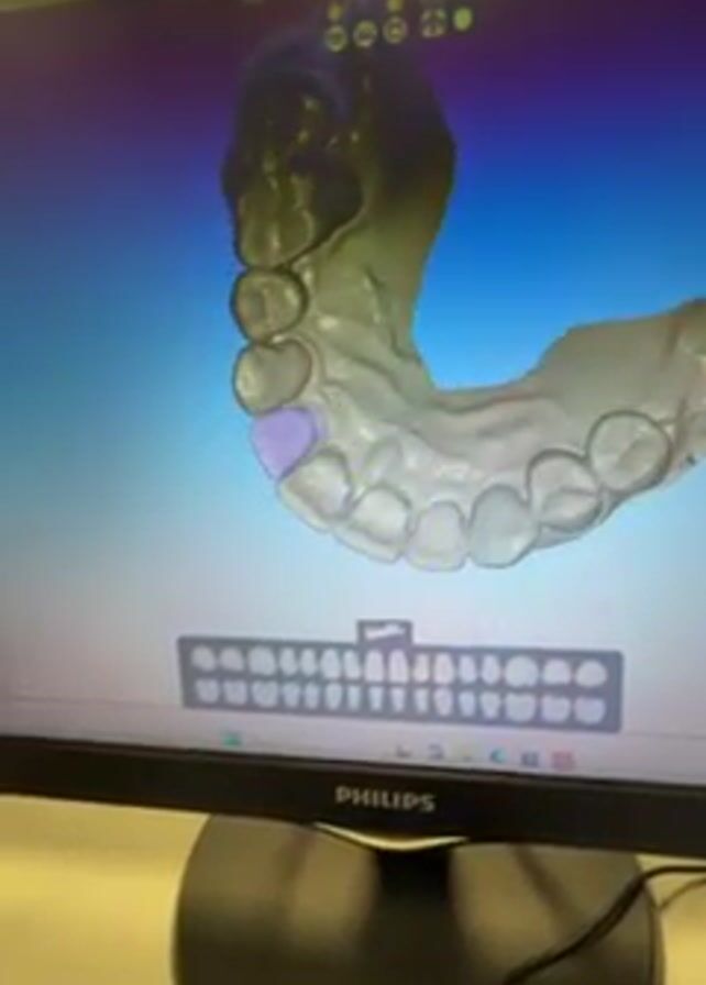 close-up view of a Philips computer monitor displaying a 3D dental model