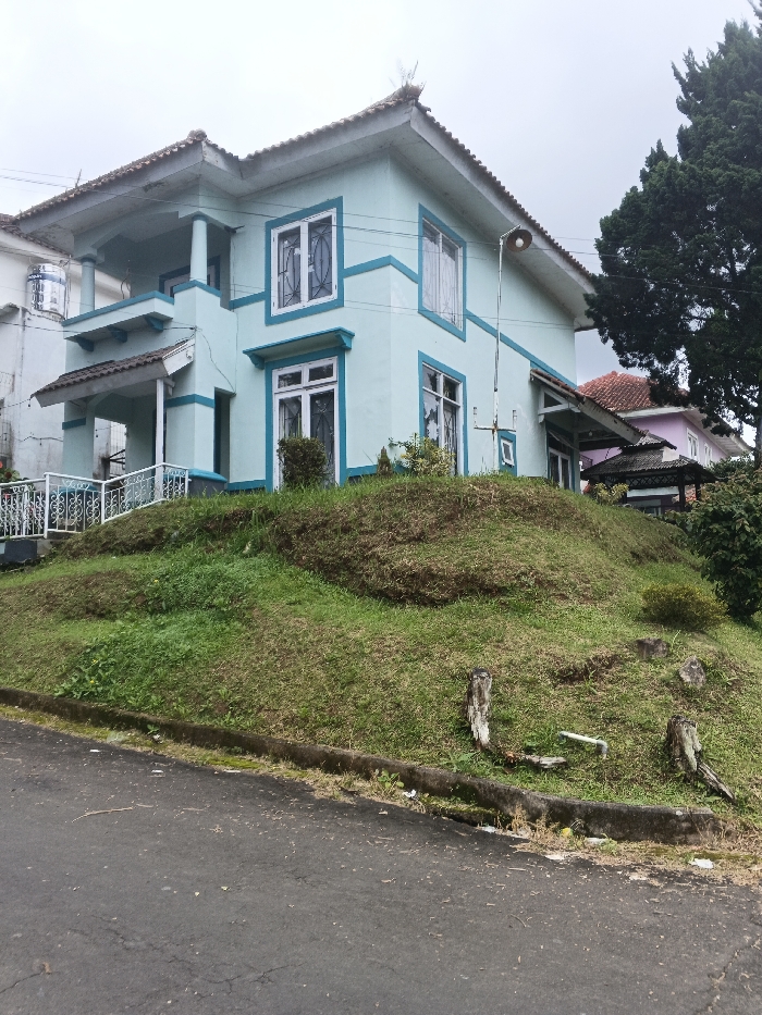 - "The image displays an exterior view of a two-story residential building, painted light blue with contrasting darker blue trim around windows and along horizontal bands, situated on an elevated grassy mound adjacent to a paved road in Pô Kô, Vietnam" by FM-paRGh1, licensed under CC BY 4.0