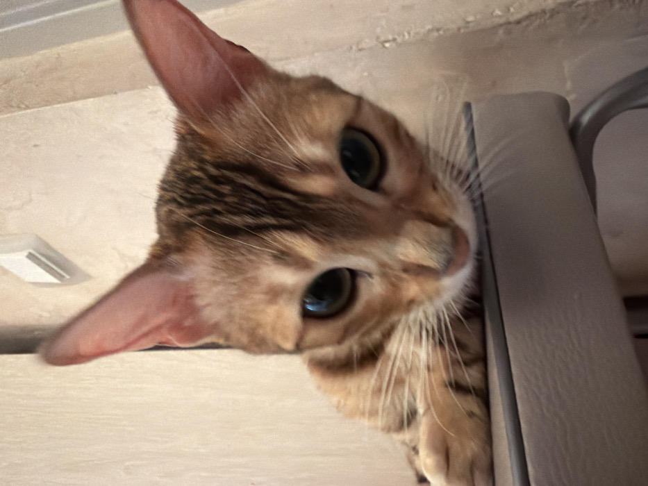 - "A Bengal cat with tawny fur and dark brown rosetted markings is positioned in the foreground, its head lowered and gaze directed towards the viewer" by FM-GgEhs1, licensed under CC BY 4.0