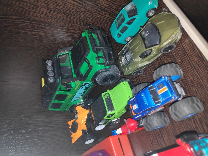 - "The scene depicts a collection of toy vehicles displayed on a dark brown wooden shelf in a residence in Hlybokaye, Belarus" by FM-4y4T32, licensed under CC BY 4.0