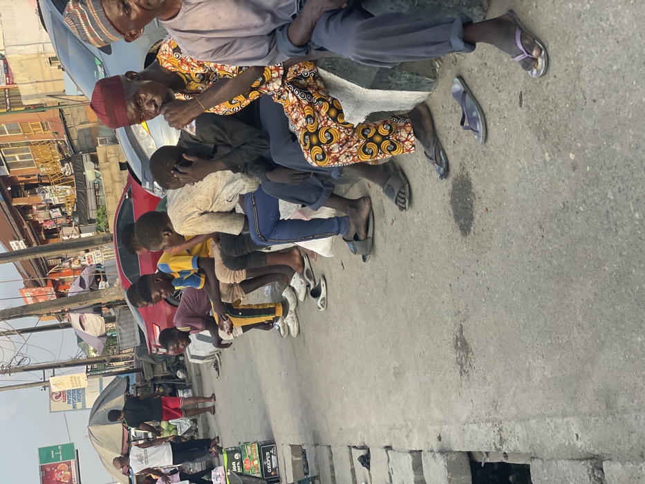 The image depicts a bustling street scene in the city of Ado, Nigeria, observed during daylight hours