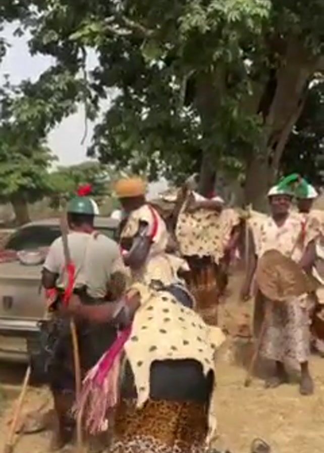 In the video, a group of people are gathered in an outdoor setting, possibly for a traditional ceremony or celebration