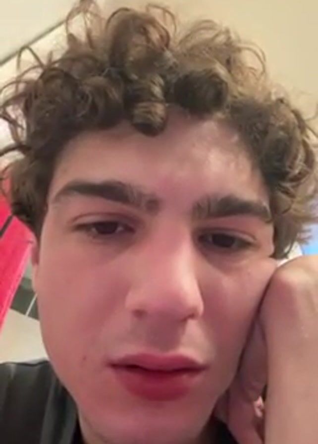 A close-up shot shows a young man with curly brown hair