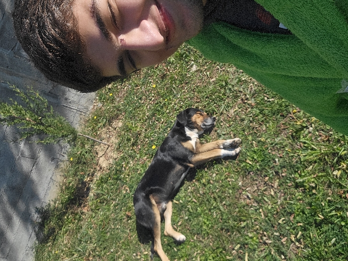 - "A selfie-style photograph depicts a young male and a medium-sized dog outdoors in Buriani, Georgia, under direct sunlight" by FM-oPbvC2, licensed under CC BY 4.0