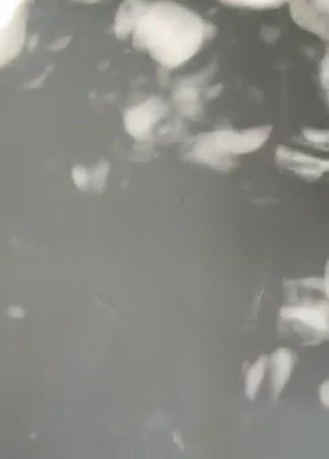 gray wall with blurry, rounded light spots cast upon it. The spots are mostly white, with some dark edges, and they appear to move slightly. There is some faint texture visible on the wall surface.