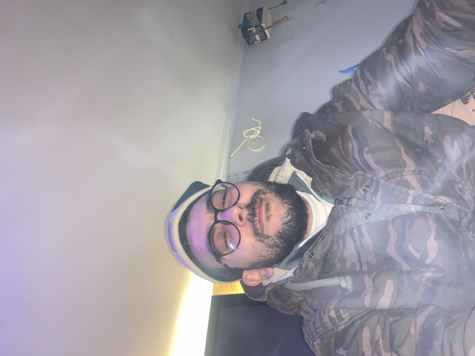 - "A person wearing glasses and a beanie is seen from the chest up, wearing a camouflage jacket" by FM-5gXC02, licensed under CC BY 4.0