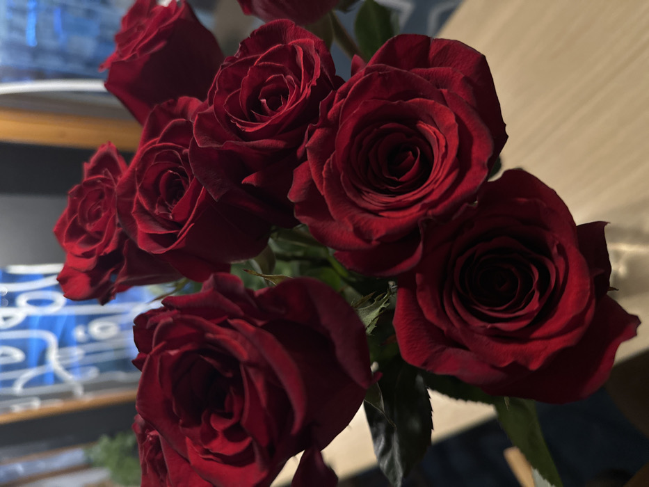 - "The image displays a close-up, vertical composition of a bouquet comprising approximately one dozen deep crimson roses" by FM-DAu7l2, licensed under CC BY 4.0