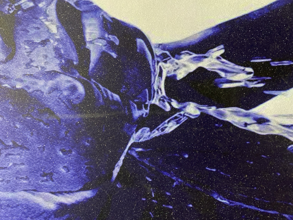 A close-up reveals an abstract scene dominated by shades of blue