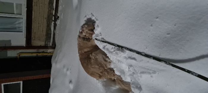 - "A tan dog is partially buried in a snowdrift" by FM-EqdoN2, licensed under CC BY 4.0