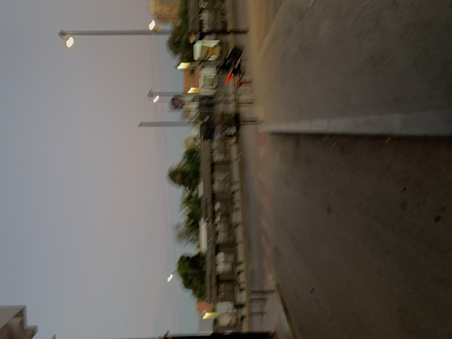 The image presents a blurry, low-light street scene in Casablanca, Morocco, captured during twilight or early morning