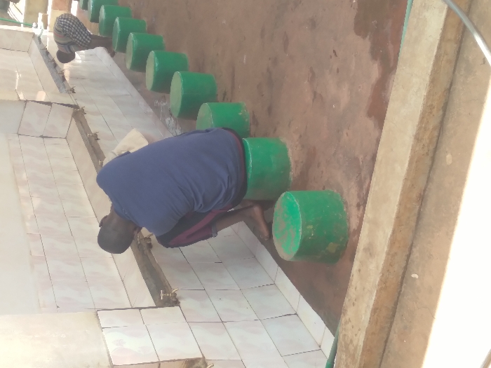 The image depicts an outdoor ablution area, likely at a mosque, located in Nyeri, Kenya