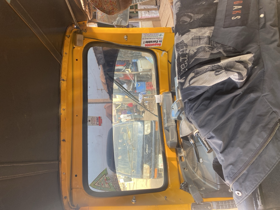 The scene, observed from the interior of a yellow-framed tricycle (keke napep), depicts a street in Nassarawa, Nigeria