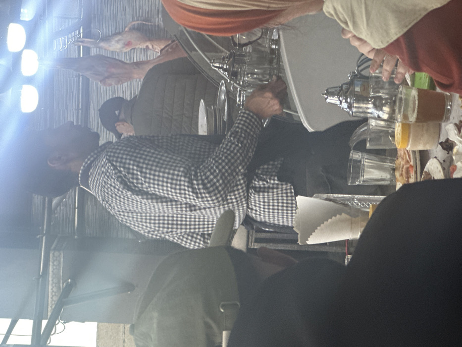 - "A man in a checkered shirt pours liquid from a silver teapot into glasses on a white table, surrounded by other people" by FM-pPInN2, licensed under CC BY 4.0