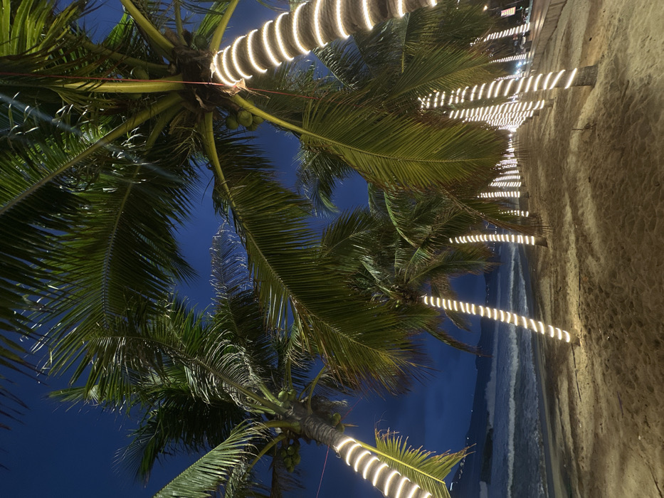 This image captures a nighttime scene along the beachfront in Nha Trang, Vietnam