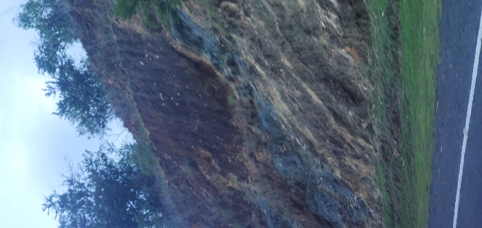 - "A rocky embankment, heavily textured with shades of brown and gray, rises beside a road" by FM-iWRRD2, licensed under CC BY 4.0