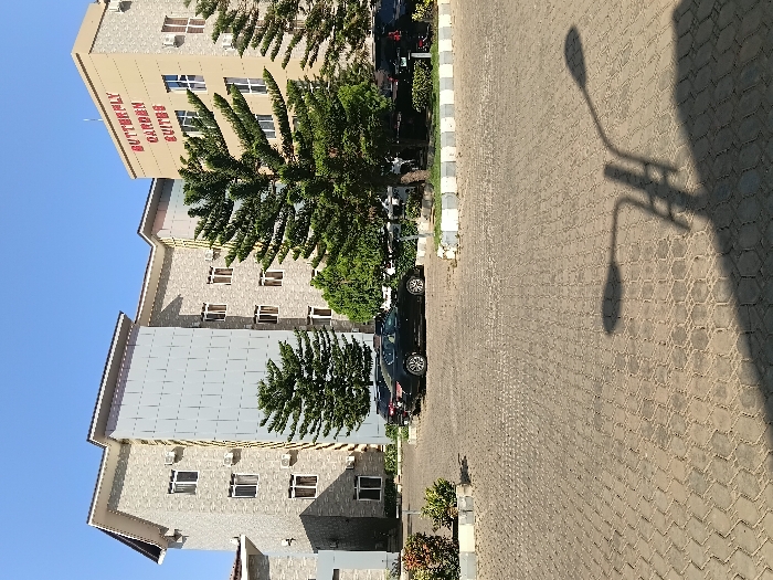 This image depicts the exterior of the "BUTTERFLY GARDEN SUITES" building complex, located at 7 Yakubu Avenue, Narayi, Kaduna, Nigeria
