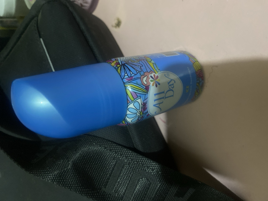 - "A single "ALL Day ICE" roll-on deodorant bottle, approximately 15 cm tall, stands upright on a smooth, light pink surface" by FM-rZumQ2, licensed under CC BY 4.0