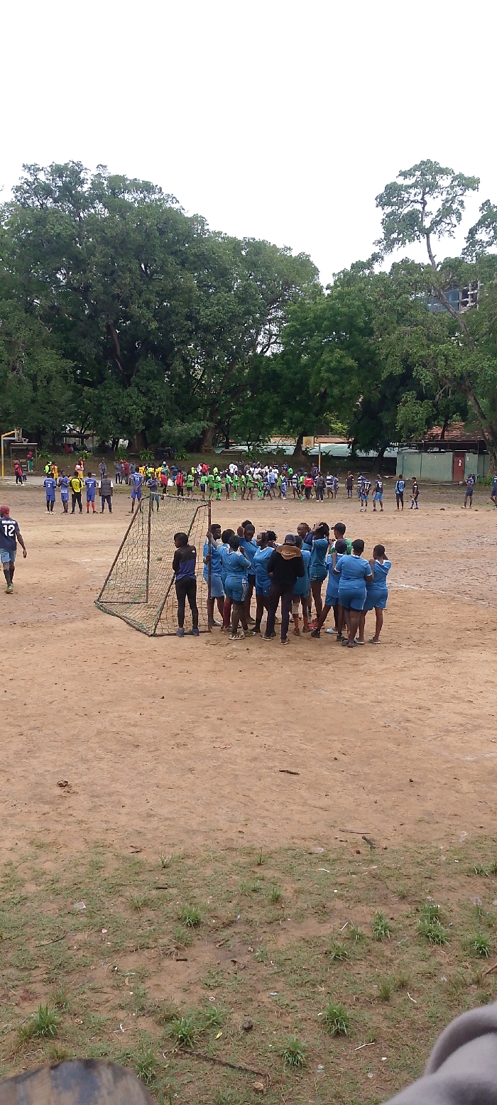 The image depicts an outdoor sports field, consistent with a location in Tudor ward, Kenya, under an overcast sky