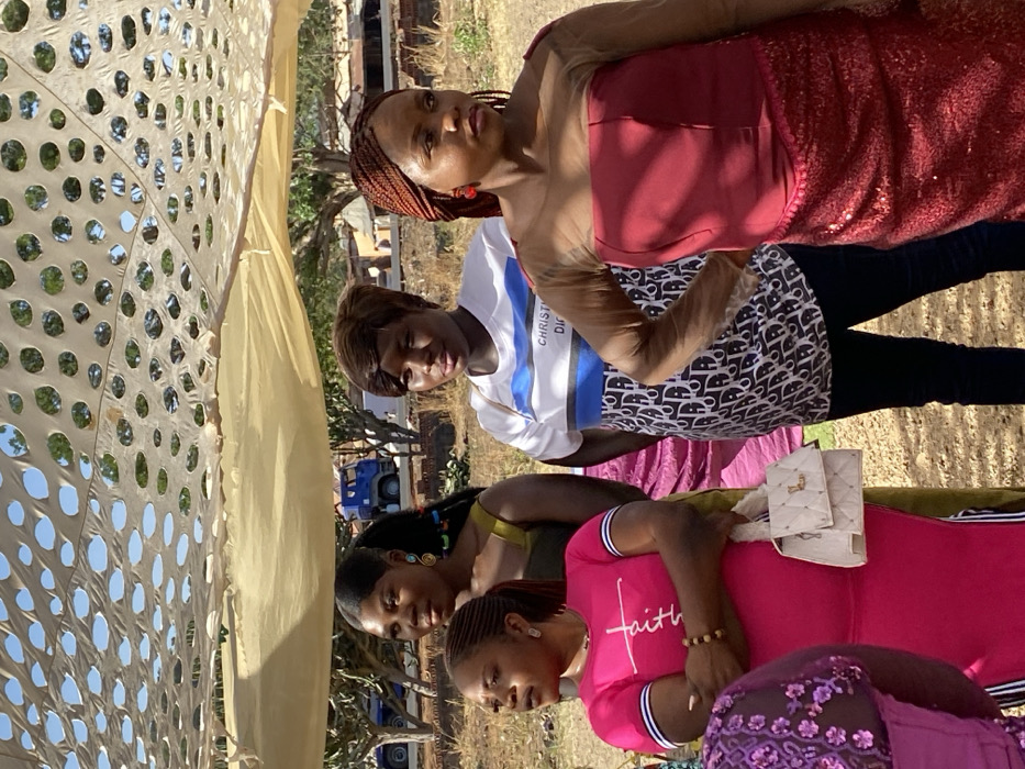 The image captures an outdoor daytime scene in Kuru Dungus, Nigeria, beneath a dual-layered canopy