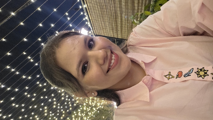- "A close-up portrait shows a young adult female, likely in her early twenties, smiling directly at the viewer" by FM-70rZN2, licensed under CC BY 4.0