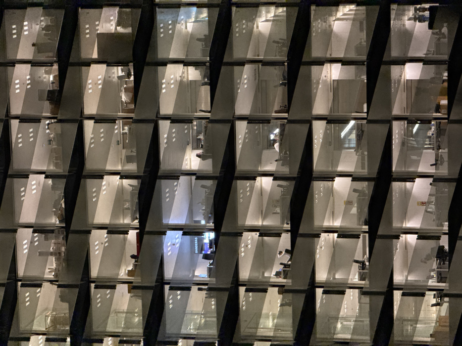 - "The image depicts a building facade at night, featuring numerous rectangular windows arranged in a grid" by FM-hin5S2, licensed under CC BY 4.0