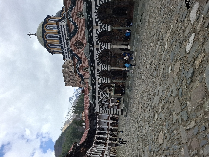 - "The image displays the paved courtyard of the Rila Monastery, located in the Rila Mountains of Bulgaria, under an overcast sky with glimpses of blue" by FM-oiyXJ3, licensed under CC BY 4.0