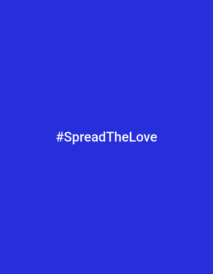The image consists of a solid royal blue background. Centered on this background, white sans-serif text reads "#SpreadTheLove". The hashtag symbol is followed by the words "SpreadTheLove" with initial capital letters for each word. No people, objects, actions, interactions, or discernible environmental features are present in the image. There is no visual information to indicate a specific location, including the city of Pernik, Bulgaria.