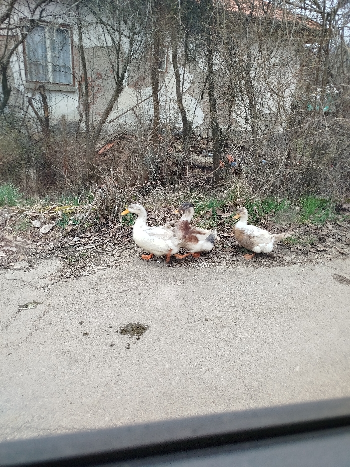 - "Three ducks are positioned on the edge of a paved surface in Klenovik, Bulgaria" by FM-jg5Lp1, licensed under CC BY 4.0