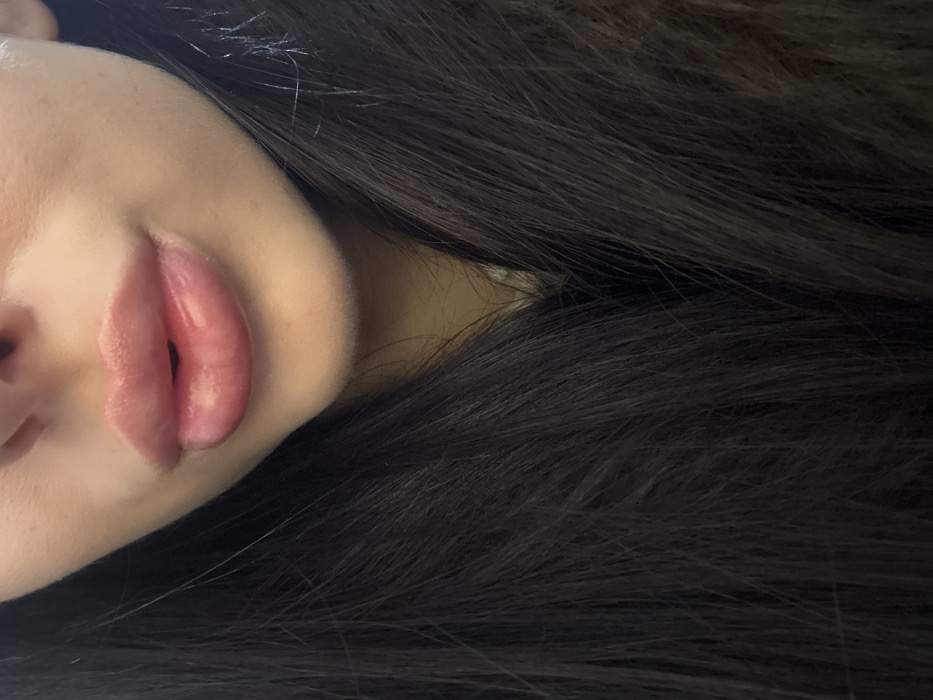 - "The image displays a close-up, cropped view of a person's lower face, including the mouth, chin, and surrounding facial contours, framed by long, dark brown hair" by FM-HV5T83, licensed under CC BY 4.0