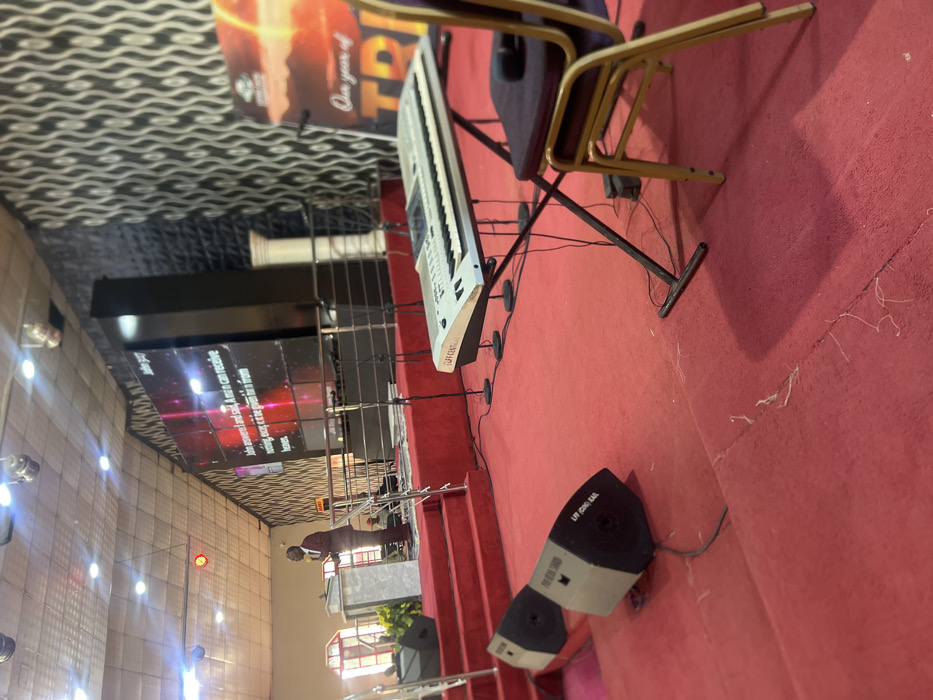 An interior view of a religious assembly hall, presumed to be a church, located in the city of Dadi Riba, Nigeria