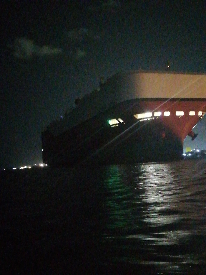 - "At night, a large ship illuminates the water" by FM-G1Iwr2, licensed under CC BY 4.0