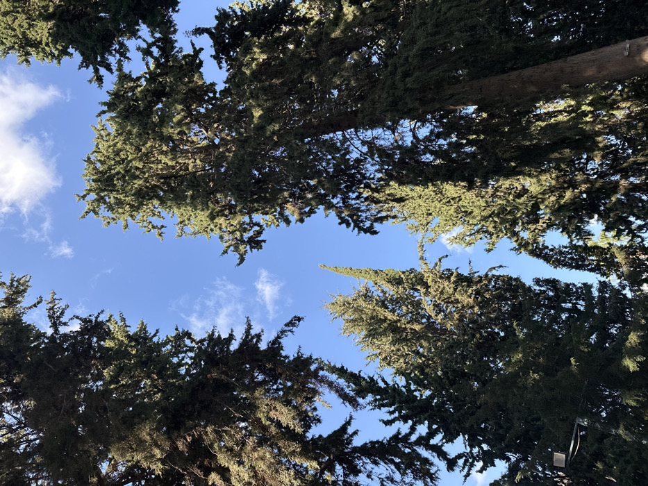 - "The image displays an upward perspective of a bright blue sky partially obscured by the crowns and branches of numerous tall, dark green coniferous trees, consistent with a treed area in Herzliya, Israel" by FM-jXUQf2, licensed under CC BY 4.0