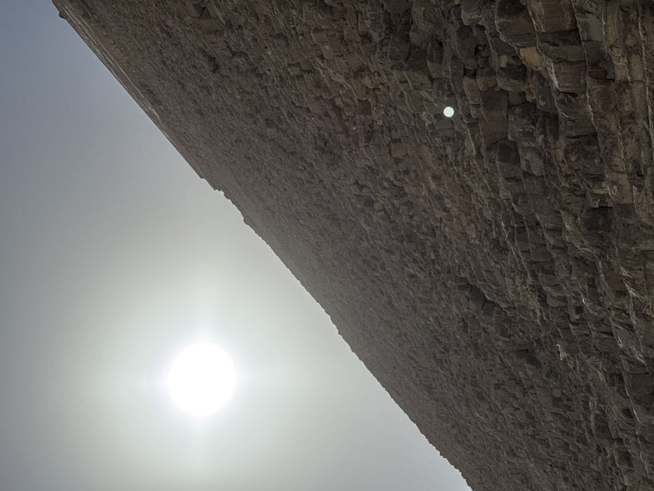 - "The image displays the weathered stone face of a large pyramid located in Giza, Egypt, captured from a low, upward-looking angle" by FM-E8HK12, licensed under CC BY 4.0