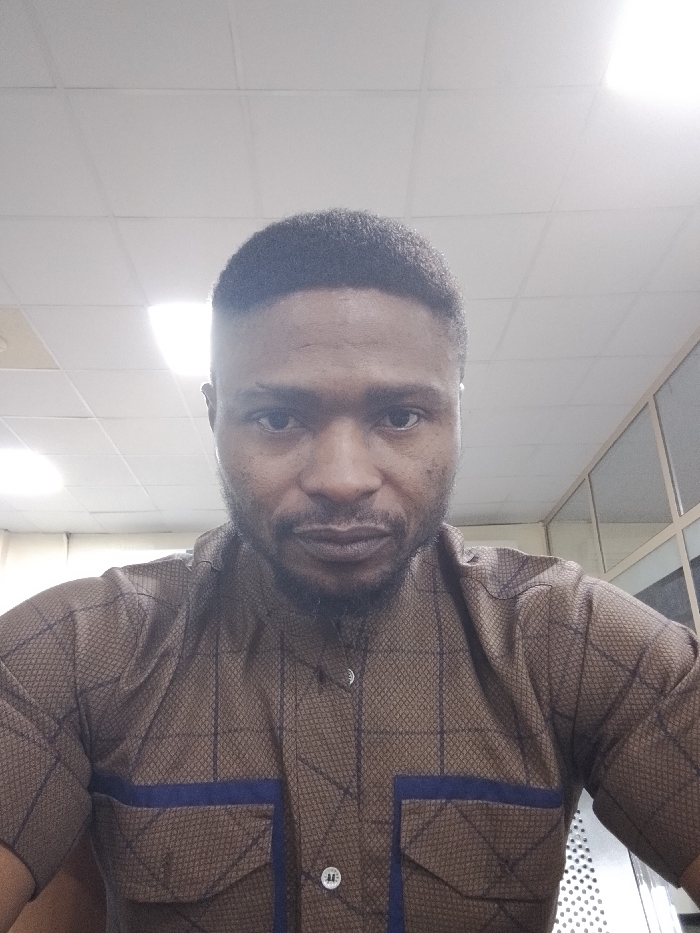 An adult male is centered in a close-up indoor photograph, taken at an unknown location in the city of Unknown, Unknown