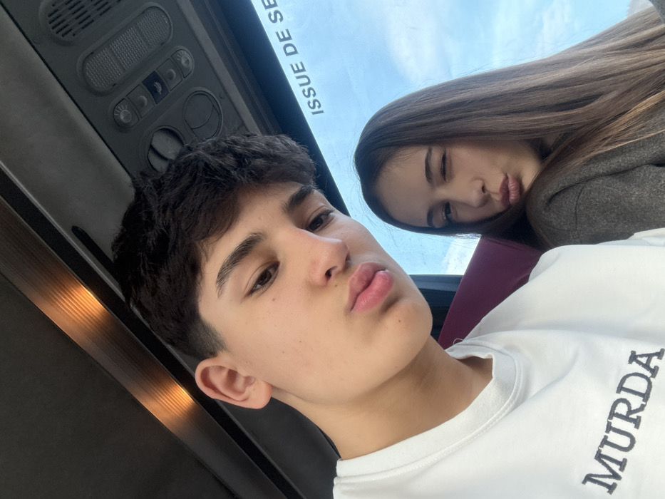 - "The image depicts two young individuals, one male and one female, captured in a selfie-style photograph inside a vehicle" by FM-w6ocp1, licensed under CC BY 4.0