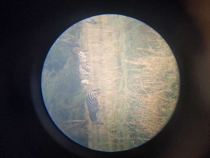 The image displays a circular view, indicative of a scene observed through an optical device such as binoculars or a spotting scope
